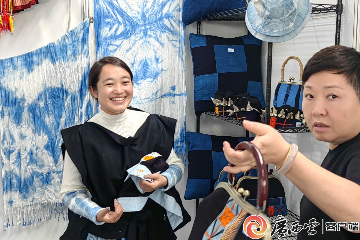 藍靛服飾受歡迎。 這一邊,鄉(xiāng)村工匠名師、桂林漆器傳承人王伯楊的展位也是人頭攢動,隨著同是傳承人勞傳勝的介紹,大家紛紛拿起柚罐把玩。“他們賣的不是商品,堪稱藝術(shù)品,推介的是一種生活方式。”觀眾如此點贊。在王伯楊的帶動下,技藝從業(yè)人員超100人,年產(chǎn)值約3000萬元。