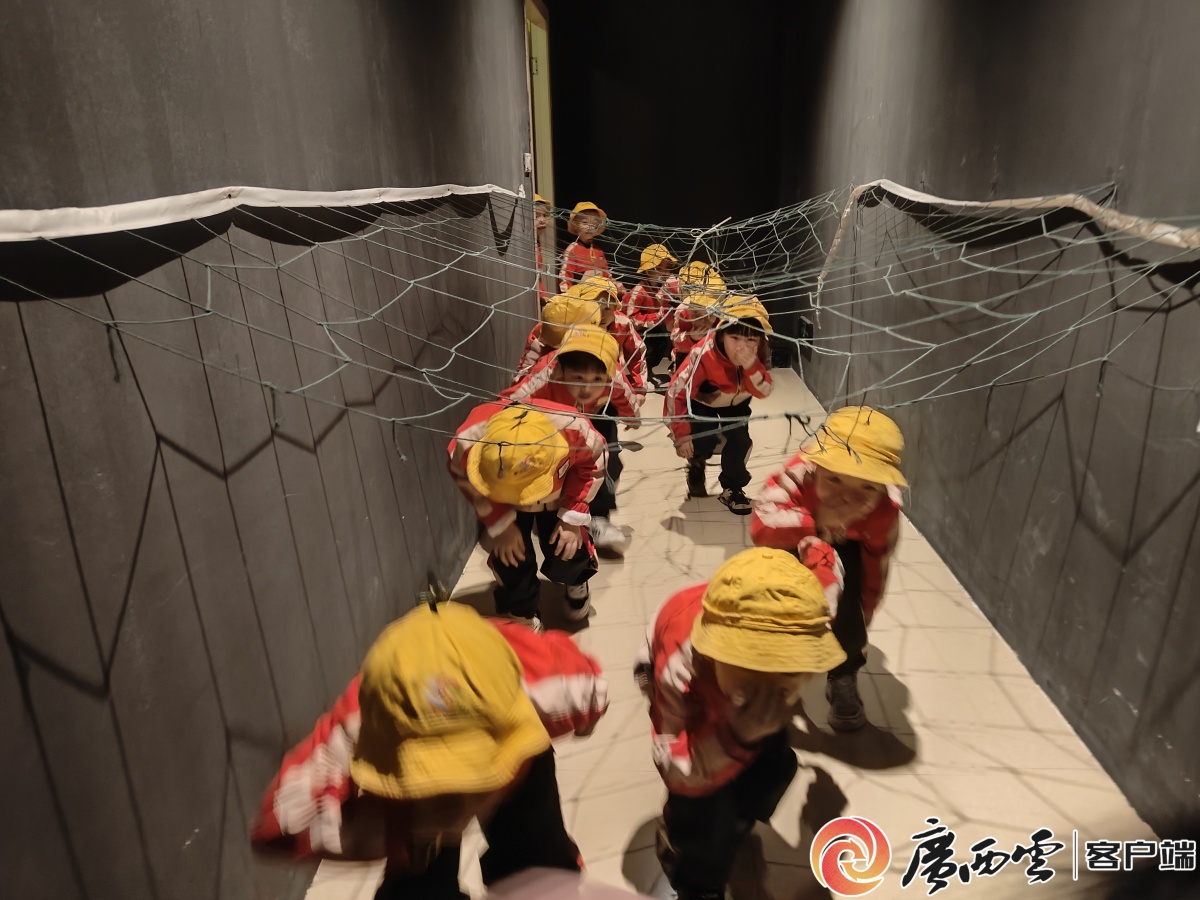 小朋友體驗“火場”逃生。 活動伊始,小朋友們走進消防科普教育館參觀,被館內豐富的圖文展板和模擬設施深深吸引,在消防指戰員講解引導下,學習了解消防救援隊伍的歷史和消防知識,并進行火場逃生體驗。“好高大的消防車!我要上去體驗!”當高大的紅色消防車呈現在眼前時,小朋友們響起了陣陣興奮的驚嘆聲,依次登上消防車親身體驗當“消防員”。“哇!這條水龍真神奇!”在體驗水槍滅火時,小朋友們紛紛感嘆道。其間,小朋友們還學習了解了日常用火用電安全事項、各類消防裝備器材的名稱、性能及用途,對這些“神秘裝備”充滿了好奇,并紛紛上前體驗。