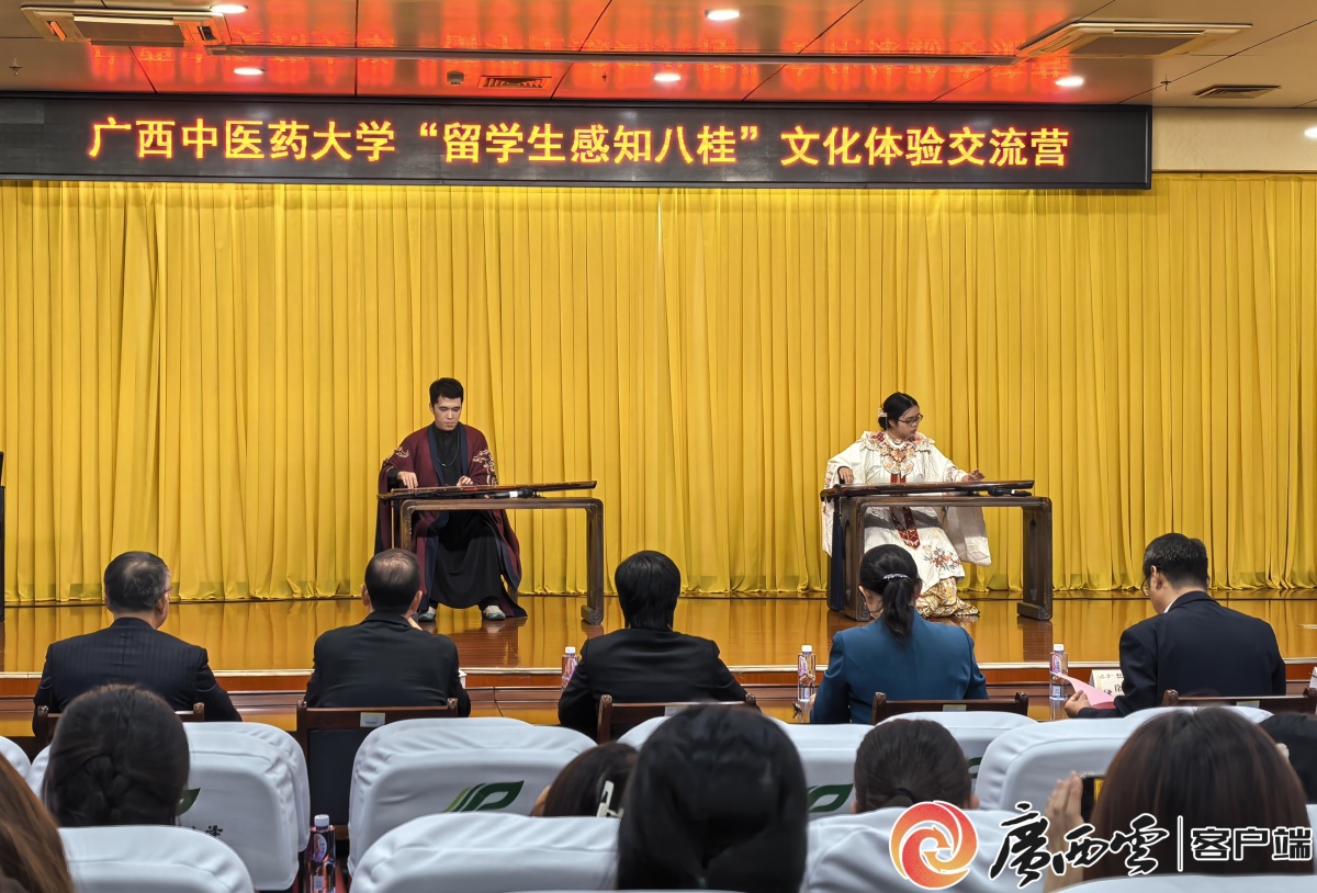 學生演奏中國傳統樂器古琴。記者 黃玲娜 攝 “留學生教育是中外人文交流的重要橋梁,肩負‘融通中外、文明互鑒’ 的使命。”廣西高等教育學會外國留學生教育管理專業委員會副會長謝瑩表示,本次交流營以 “文化體驗” 為核心,將課堂延伸至八桂山水間,這種 “行走的課堂” 能讓留學生真正觸摸歷史、感知文化、理解醫學,助力培養知華、友華、愛華的國際青年人才。 廣西中醫藥大學副校長鐘宏桃介紹了廣西作為中國唯一臨海少數民族自治區的獨特優勢,以及豐富的中醫藥、壯瑤醫藥資源,她表示,廣西中醫藥大學將以專業優勢為依托,讓留學生在實踐中領略民族醫藥的深邃魅力。隨后,留學生代表上臺分享了對此次交流營的期待,言語間滿含對中醫藥文化與八桂風情的向往。