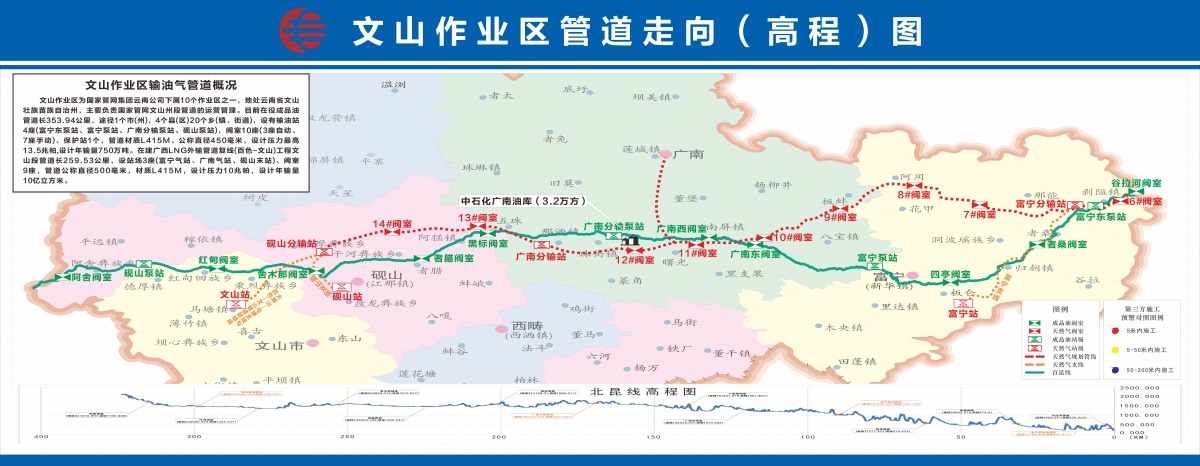文山作業區管道走向圖。 “要加強省際天然氣管道互聯互通,加快實施廣西—云南省際天然氣管道建設,充分發揮北海LNG接收站的戰略定位及調峰儲氣優勢。”2018年9月,《國家能源局北海LNG接收站專項調研推進會會議紀要》為區域能源協同發展指明方向。 目標清則方向明。這條在滇桂峻嶺間“穿針引線”的能源動脈,其建設是一場與復雜地形的正面較量:河流大中型穿越3處,山嶺隧道7處,穿越鐵路、高速公路等30多條。面對挑戰,工程采用多種先進技術和智能管理系統等,如“橇裝化、模塊化、裝配化”技術,自動焊工藝等,創新高效推進項目建設,工作效率顯著提升。