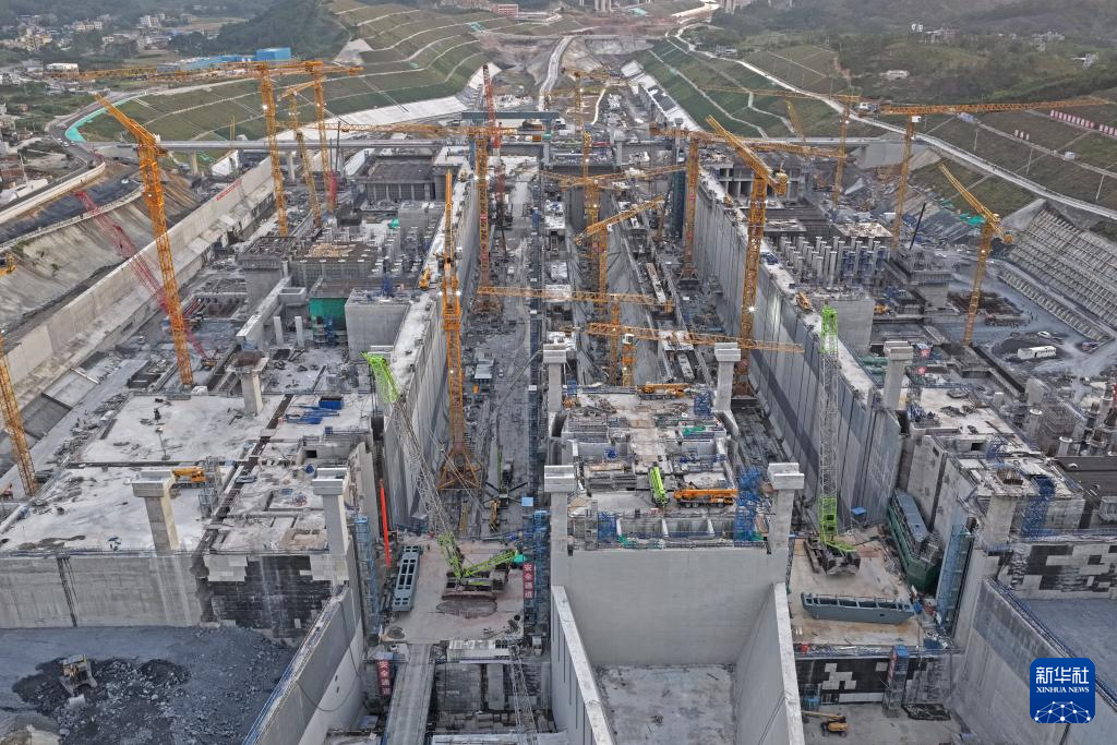 這是11月11日拍攝的廣西平陸運(yùn)河馬道樞紐施工現(xiàn)場(無人機(jī)照片)。新華社記者 周華 攝 |