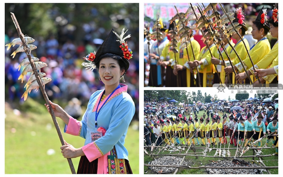 上一排圖:廣西云-南國今報記者 黃真真 攝;下一排圖:廣西云-廣西日報記者 謝永輝 柳城縣融媒體中心記者 湯曉逵 雷昕 攝 節(jié)日中,當(dāng)然少不了舌尖上的盛宴 風(fēng)味獨特的古砦酸 軟糯可口的木薯羹 用植物染料制成的五色糯米飯 …… 香氣四溢,令人垂簾欲滴 農(nóng)產(chǎn)品集市上,游客們大包小包 爭相選購生態(tài)大米、野生蜂蜜 特色菌菇、紅薯芋頭等綠色農(nóng)產(chǎn)品 現(xiàn)場人頭攢動,熱鬧非凡 來源:柳州市柳城縣融媒體中心 融水燒魚節(jié) 10月2日至9日 柳州市融水苗族自治縣紅水鄉(xiāng)高文村 迎來第二十屆燒魚節(jié) 活動期間 田間摸魚、烤田鯉、吃簸箕宴 民族舞蹈賽、蘆笙踩堂、拔河競技 籃球比賽等精彩項目輪番上演 與游客共慶豐收喜悅 活動持續(xù)8天 線下參與群眾及游客約4萬余人次 線上直播累計吸引超過70萬人次觀看互動