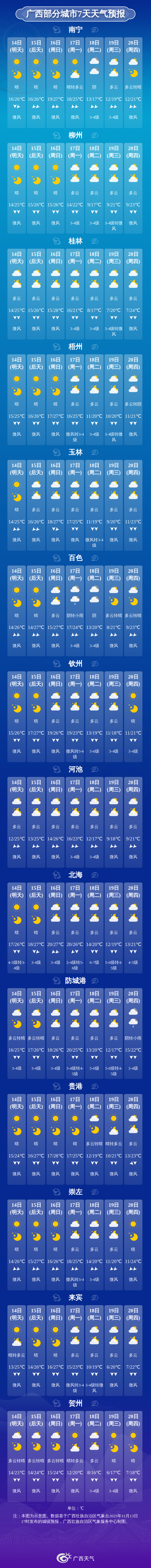 未來三天天氣預報 廣西氣象臺13日17時發布預報: 陸地天氣預報