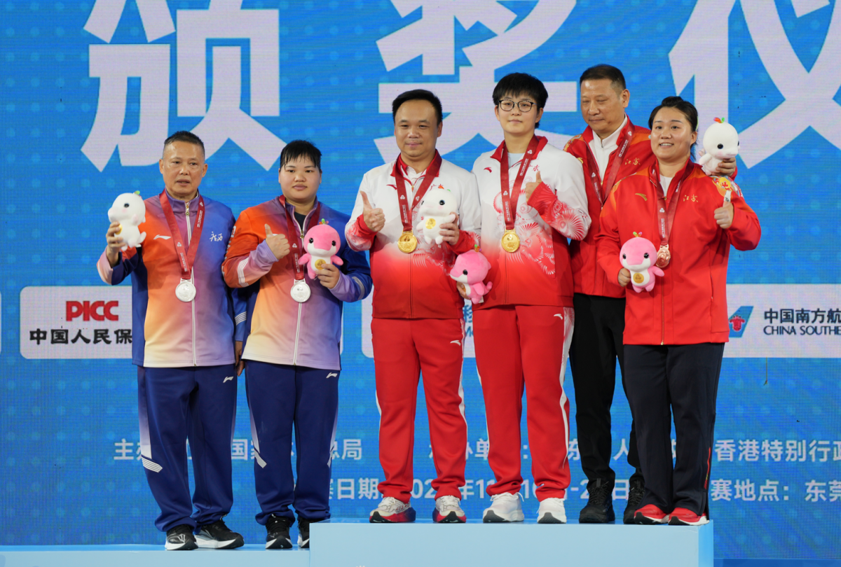 梁小梅(左二)與教練韋青山(左一)登上亞軍領獎臺。 但時不待我,“走下冠軍領獎臺,一切歸零。”鄧惠潔認為,廣西女舉必須馬上著手規劃未來了。她說:“本屆全運會后,唐靜、張玉娟、蔣惠花幾個老運動員要退役,面臨著新老隊員接替的問題。再加上明年按新的奧運級別進行比賽,比如姐妹花趙金紅趙金蘭的級別將由現在的45公斤級調整到53公斤級,這對我們是一個大的挑戰。” 對于未來的挑戰,鄧惠潔沒有皺眉頭,她回應道:“每一屆全運會我們都不容易,只有去拼。我相信年輕的一代隊員還是能迎頭趕上的。” 梁小梅在2021年陜西全運會上獲得一枚銅牌后,先后奪得世錦賽冠軍、亞錦賽和亞運會金牌,多次打破世界紀錄,2024年因傷病遺憾錯過了巴黎奧運會。但這次全運會上,她憑著一鼓拼勁,克服傷病影響,拼下一枚來之不易的銀牌。 說起這員老將,鄧惠潔頗為感慨,“小梅是一名大器晚成的隊員,她的成功沒什么秘密,就是努力奮斗。這些年來梁小梅治療傷痛的時間比訓練時間都多,基本都是半天訓練半天治療。”她透露,“這屆全運會后,梁小梅不會離開賽場,她依然有著奧運夢想,她將努力爭取重回國家隊,重新走上國際賽場,重回巔峰。” |