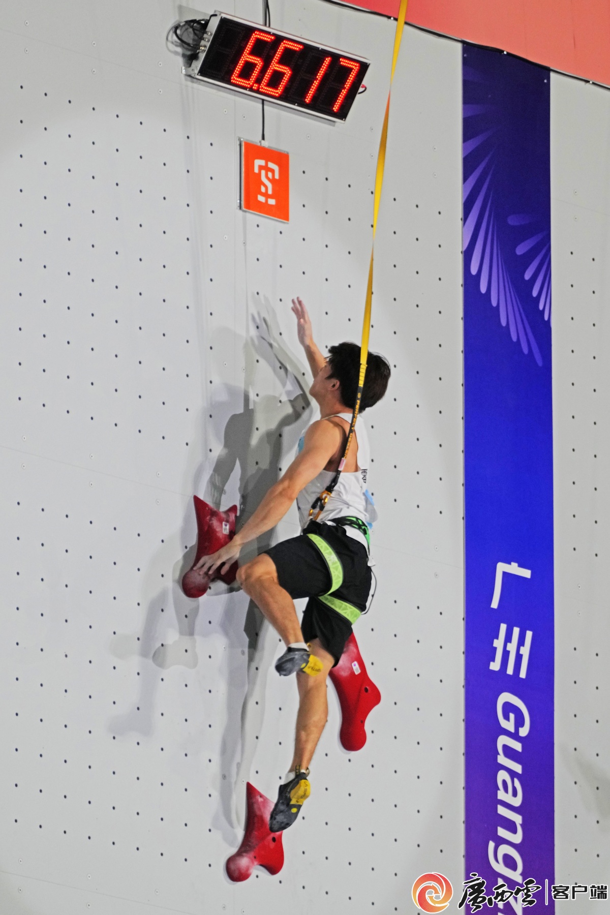 廣西選手零勇志在男子速度決賽中獲得第九名。金翔義 攝 女子速度1/8決賽中,覃于妹發揮順利成功晉級,但在隨后的1/4決賽半途出現失誤。零勇志則在男子速度決賽首輪起步失誤,憾負對手,最終兩位廣西運動員皆無緣領獎臺。 本屆全運會攀巖項目速度決賽的競爭相當激烈,成績差距在毫厘之間。能與全國各地的攀巖好手一決高下,覃于妹認為:“這是一次寶貴的實戰經驗積累,失誤也讓我更清楚地認識到保持沉著心態的重要性。” 今年的成都世界運動會上,覃于妹已嶄露頭角,拿下兩枚個人銀牌和一枚團體銀牌。作為國際賽場上發揮出色的攀巖新秀,她的表現備受矚目。覃于妹表示,對待這次比賽的態度也絲毫不遜于國際大賽!拔覍⒄J真復盤調整,爭取在未來的比賽有更好的表現!