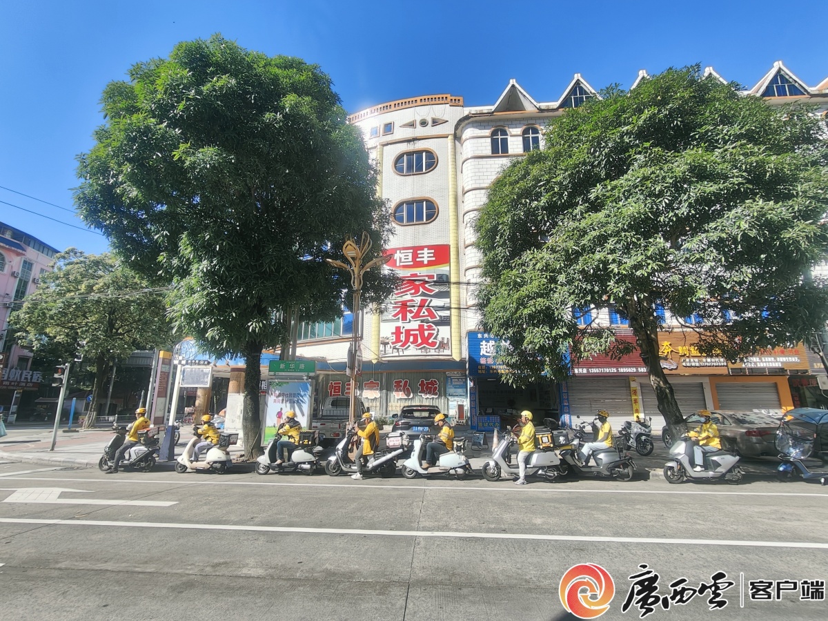 騎手們騎行宣傳消防知識。 活動當天,10名美團外賣騎手參觀了消防科普教育館,通過實地學習和體驗,進一步掌握了實用的防火、滅火及逃生知識。隨后,騎手們騎著貼有消防宣傳標語的電動自行車,從民族路出發,沿天和路、新華路一路騎行,最終抵達東興口岸廣場。車隊穿行于城市主干道,成為一道流動的消防安全宣傳風景線。在東興口岸廣場,一場別開生面的“5分鐘消防快閃課堂”精彩上演。10名美團騎手精神飽滿,依次循環出列,每人按順序高聲說出今年“119”消防宣傳月活動主題。清晰的吐字,連貫的接力,巧妙地將主題內涵傳遞給現場群眾。最后,騎手們迅速集結,齊聲完整地喊出“全民消防、生命至上——安全用火用電”的響亮口號,將現場氣氛推向高潮。