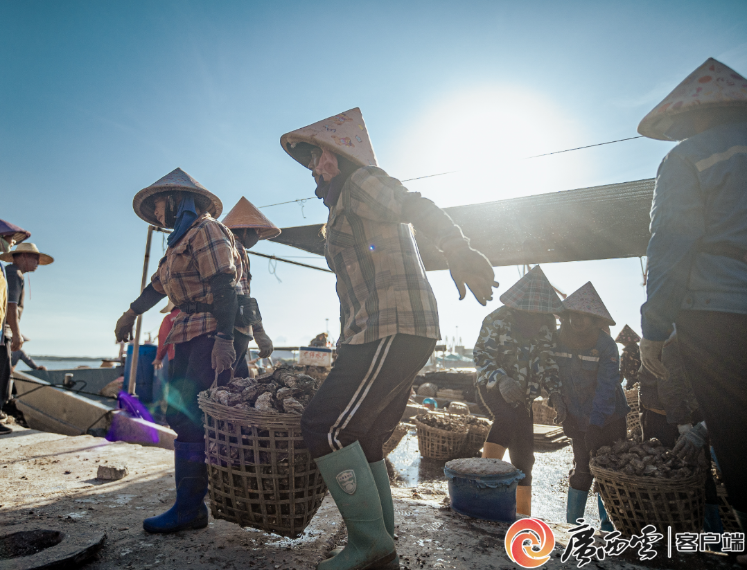 工人正在裝卸大蠔。黃琳琳 攝 茅尾海畔蠔排密布,生態(tài)養(yǎng)殖富鄉(xiāng)鄰。在防城區(qū)茅尾海域,2萬余畝養(yǎng)殖海域里蠔排星羅棋布。防城區(qū)茅嶺鎮(zhèn)作為生蠔養(yǎng)殖核心區(qū),25公里長的海岸線為產業(yè)發(fā)展提供了優(yōu)越條件,茅嶺鎮(zhèn)大陶村就憑借6公里優(yōu)質岸線成為遠近聞名的“大蠔村”。