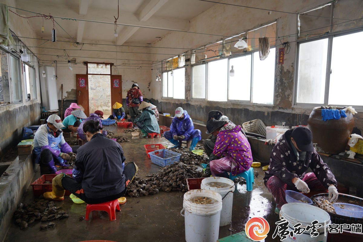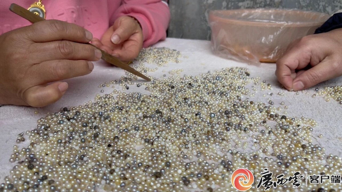 裝滿籮筐的肥美大蠔。記者 苑長軍 攝 為破解散戶養(yǎng)殖規(guī)模小、抗風險能力弱等難題,當?shù)卮罅ν茝V合作社模式,推動產業(yè)從“單打獨斗”向“抱團發(fā)展”轉型,以“飛黃水產養(yǎng)殖專業(yè)合作社”等龍頭主體率先示范,建成20萬平方米養(yǎng)殖浮排,配備專業(yè)養(yǎng)殖船只與陸上生產場地,2023年實現(xiàn)銷售收入2500萬元;2024年又追加300多萬元投入擴大養(yǎng)殖規(guī)模,新增60萬條蠔棍完善養(yǎng)殖設施;帶動50戶村民就業(yè),脫貧戶人均年增收3萬元。截至目前,防城區(qū)生蠔養(yǎng)殖總面積達2萬多畝,生蠔產業(yè)年產值已突破7.1億元,帶動3000戶農戶增收。其中,僅大陶村就涌現(xiàn)出15家養(yǎng)殖合作社,聚集養(yǎng)殖戶230戶,養(yǎng)殖海域達8000多畝,年產生蠔2400萬公斤,年產值突破2.8億元。 守正創(chuàng)新打造“向海經濟” “十四五”期間,防城區(qū)堅持“保護中發(fā)展、發(fā)展中保護”,為珍珠產業(yè)注入復興動能。通過“生態(tài)養(yǎng)殖+海洋修復”協(xié)同發(fā)展路徑,全面推廣馬氏珍珠貝“人放天養(yǎng)”生態(tài)養(yǎng)殖,珍珠產業(yè)成為文化根脈與產業(yè)支點,在“向海經濟”的征程上書寫了生態(tài)與發(fā)展共生、傳統(tǒng)與現(xiàn)代交融的時代篇章。 在意順珍珠養(yǎng)殖場,工人們正在開貝取珠。防城區(qū)融媒體中心供圖 “上世紀90年代,白龍村家家戶戶都靠插珠為生,這些老房子都是當年的插珠房。”村民林坤永的話,勾勒出防城區(qū)珍珠產業(yè)的昔日盛景。 作為馬氏珍珠貝的天然棲息地,白龍珍珠灣產出的珍珠瑩潤圓勻、質高色美,兼具藥用與裝飾價值,曾是當?shù)氐摹昂I宵S金”。然而,受市場波動與環(huán)境變化影響,這一傳統(tǒng)產業(yè)一度陷入沉寂,僅有意順珍珠養(yǎng)殖場等少數(shù)企業(yè)堅守。意順珍珠養(yǎng)殖場負責人鐘佩伶深耕南珠養(yǎng)殖近40年,帶領企業(yè)打造150畝海上養(yǎng)殖基地,與廣西大學、北部灣大學等院校建立長期合作,推廣生態(tài)養(yǎng)殖技術,在保護海洋環(huán)境的同時穩(wěn)步提升珍珠品質。讓“白龍珍珠”的金字招牌持續(xù)閃耀。憑借其過硬品質,該養(yǎng)殖場吸引廣東等地批發(fā)商常年定點采購,年產值穩(wěn)定在300萬元,50名員工中有44名為當?shù)卮迕,主要從事季?jié)性工作,讓漁民實現(xiàn)“家門口就業(yè)”。