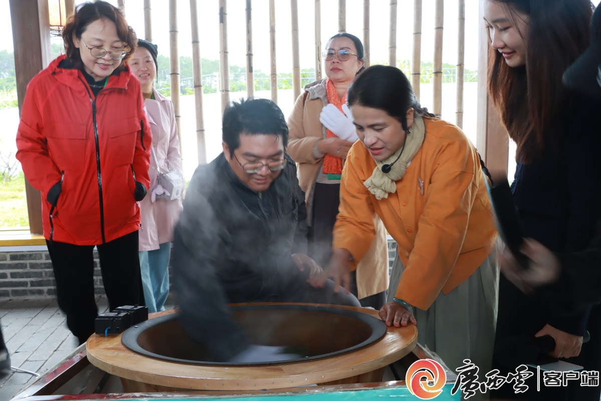 采訪團集體學習中國茶文化。 11月18日上午,來自泰國、柬埔寨、老撾等國家和地區的海外媒體人走進象州縣妙皇鄉橋頭村的古琶茶制作技藝研學基地,體驗古琶茶非遺技藝。 體驗茶葉制作的揉捻環節。 體驗茶葉制作的揉捻環節。 象州古琶茶因古琶村而得名,2020年,古琶茶制作技藝被列入廣西壯族自治區非物質文化遺產代表性項目名錄。 采訪團合影。 為將這一資源優勢轉化為經濟優勢,近年來,妙皇鄉以茶為媒,大力發展茶文化旅游,累計投入近2000萬元打造茶旅綜合體,升級茶研學院,打造民宿和觀景平臺。其中,該鄉思高村依托特色農文旅資源打造的旅游精品路線,年均吸引游客8萬多人次,帶動民眾增收300多萬元。 |