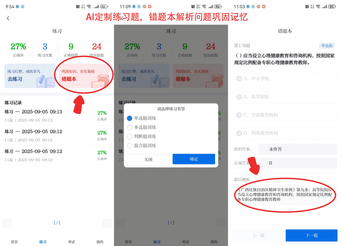 亮點2:題目量身定制,高效鞏固 利用AI算法,系統(tǒng)將智能生成個性化練習(xí)題與考題,幫您在練習(xí)和考試中加深理解、查漏補(bǔ)缺,學(xué)習(xí)效果看得見!