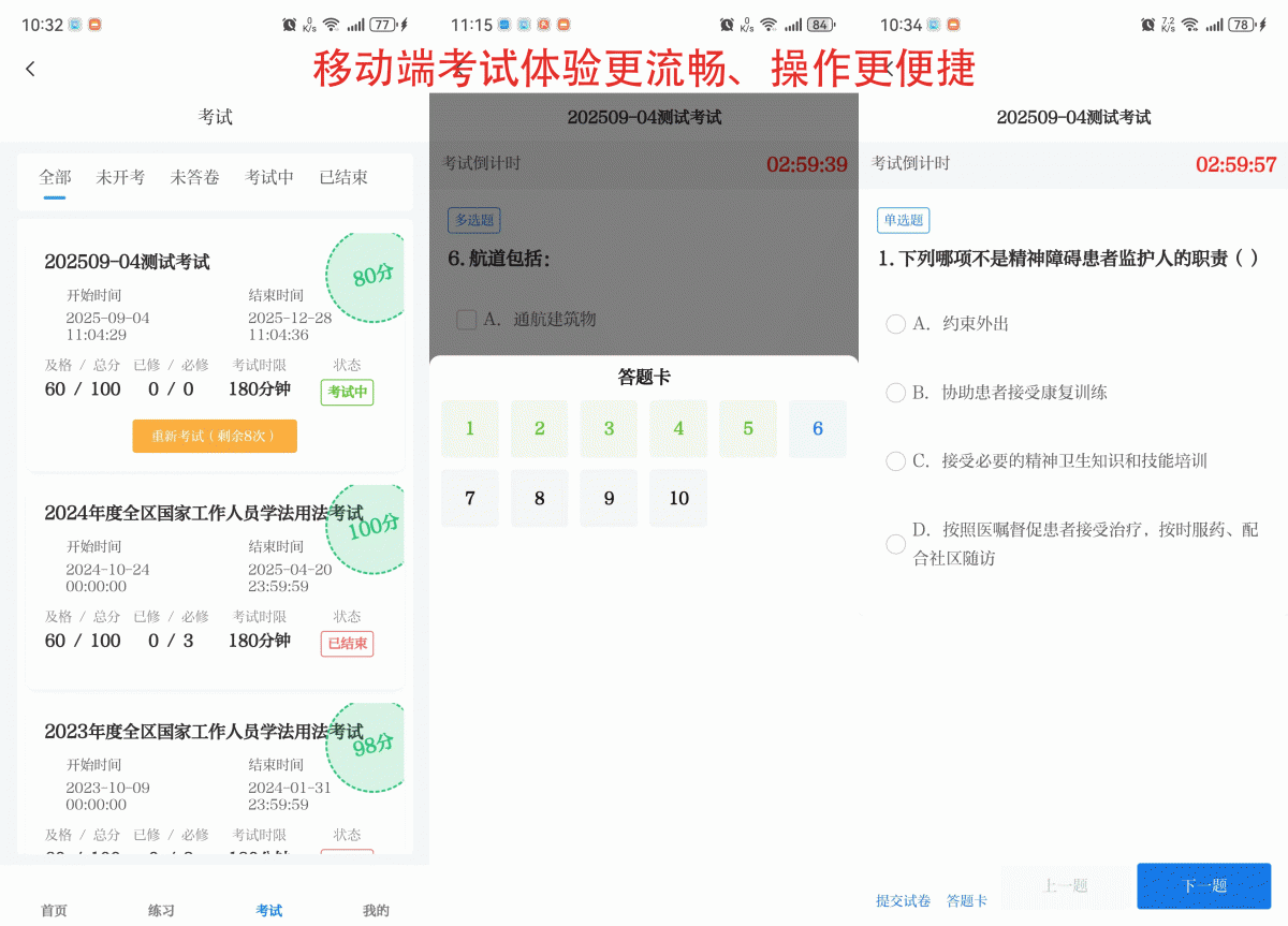 亮點3:掌上學(xué)習(xí)考試,便捷省心 移動端交互體驗大提升,往后只需登錄廣西云客戶端,就能隨時隨地利用碎片時間參與學(xué)法用法考試,便捷觸手可及。