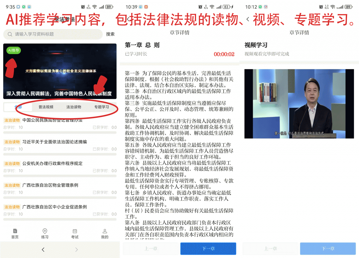 本次升級創(chuàng)新引進(jìn)AI技術(shù) 推出3大新亮點 為全區(qū)公職人員在線學(xué)法用法 提供有力支撐 亮點1:內(nèi)容精準(zhǔn)推薦,懂你需要 AI將根據(jù)您的行業(yè)和興趣,智能篩選匹配度最高的法律內(nèi)容,從此告別“千篇一律”的普法方式,讓學(xué)習(xí)更有趣、更實用,直擊您的知識盲點與需求。