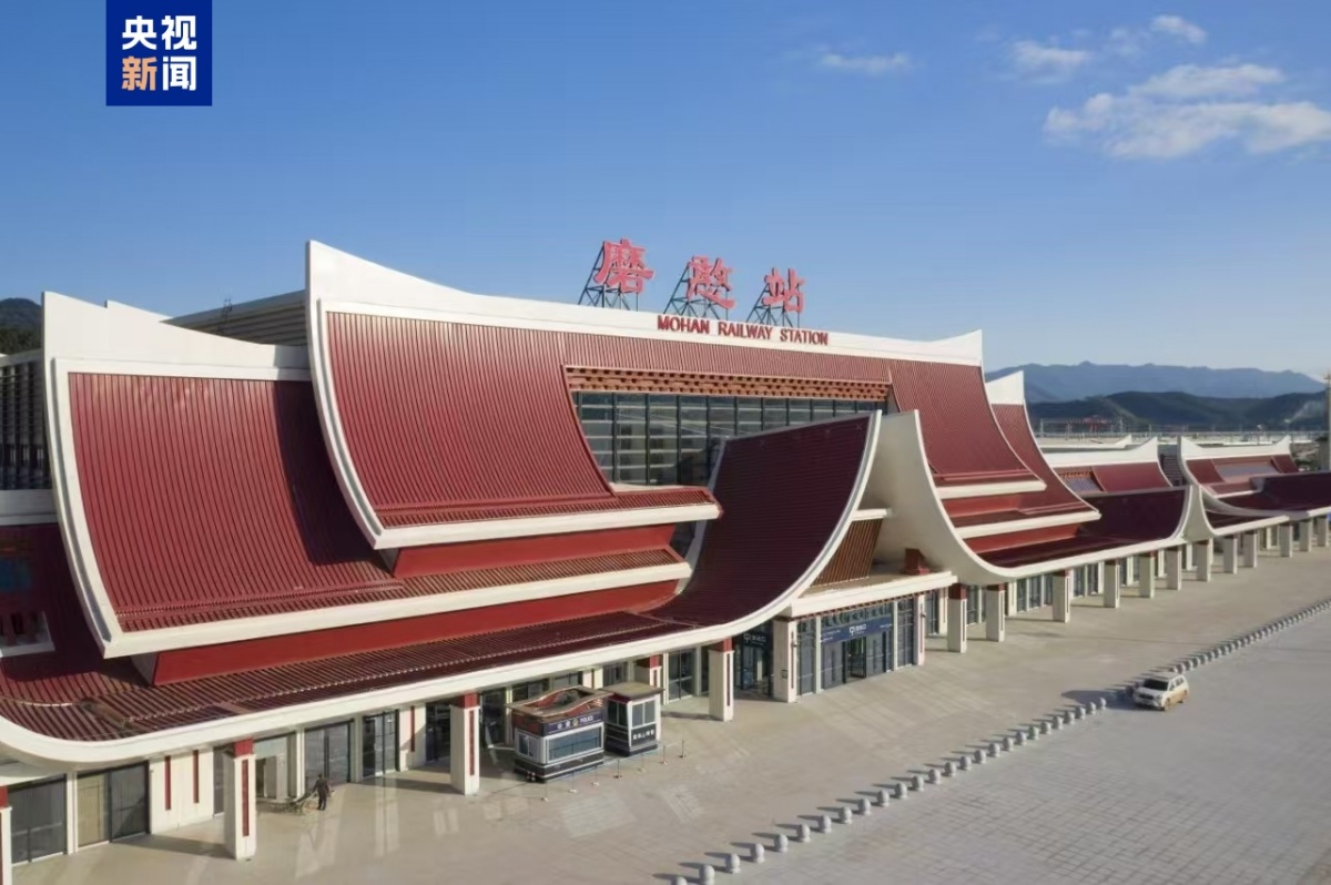 磨憨鐵路口岸(勐臘海關供圖) 中老鐵路通車運營近四年,進出口貨物已近1600萬噸,貨值近700億元,“黃金線路”帶動區域產業鏈供應鏈協同效率提升與優勢互補。 |