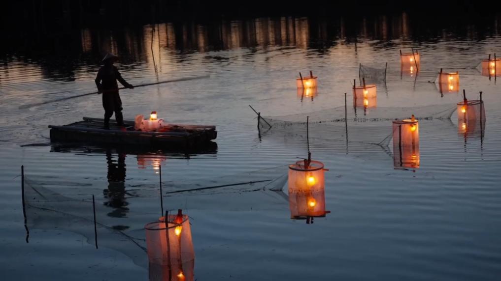 傍晚時分,京族漁民在近海點亮一盞盞蝦燈,以光為餌,誘蝦入籠。伴著晚霞,漁舟歸航,這是冬日里暮色中交織而成的溫柔樂章。
